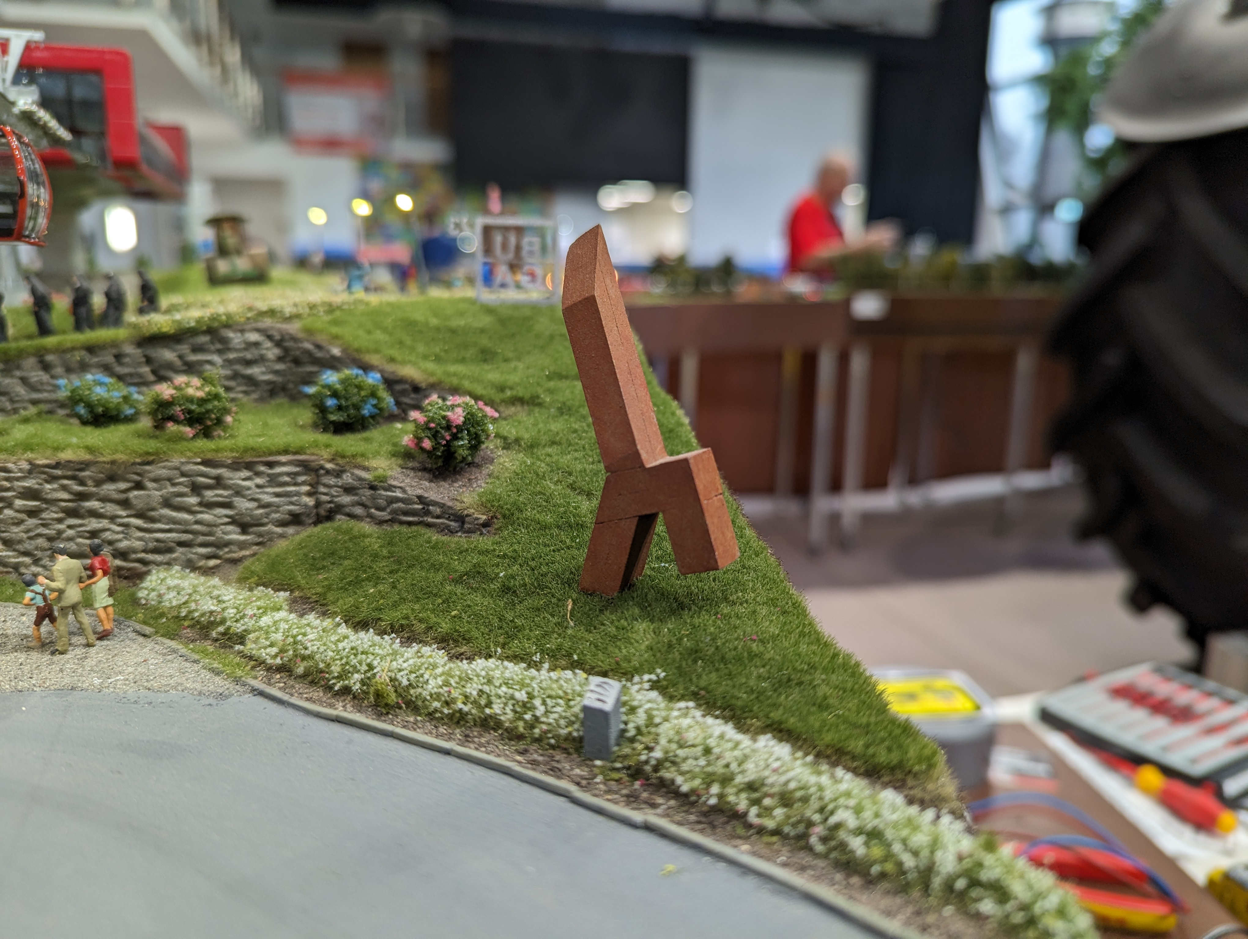 Die Idee ein Modul mit dem Thema Bundesgartenschau 2023 Mannheim zu gestalteten ist bereits 2022 entstanden, nachdem erste Skizzen der echten BUGA veröffentlicht wurden. Es war direkt klar, dass wir markante Bauwerke einbauen möchten, damit der Besucher das Gelände auf den ersten Blick wieder erkennt. Wir entschieden uns die auch über das BUGA-Gelände hinaus sichtbare Seilbahn umzusetzen sowie das Pflanzenschauhaus, die auffällig bunten Gondolettas, eine Bühne in Anlehnung an die Seebühne des Luisenparks und eines der Bauwerke des neuen Spinelligeländes, den Radschnellweg. Die Parkbahn des Luisenparks war einigen Mitgliedern im Gedächtnis geblieben, weshalb diese auf in die Entwürfe aufgenommen wurde. Damit war ein erstes Konzept erstellt und es konnte mit der Beschaffung der Materialien und dem Bau losgehen.